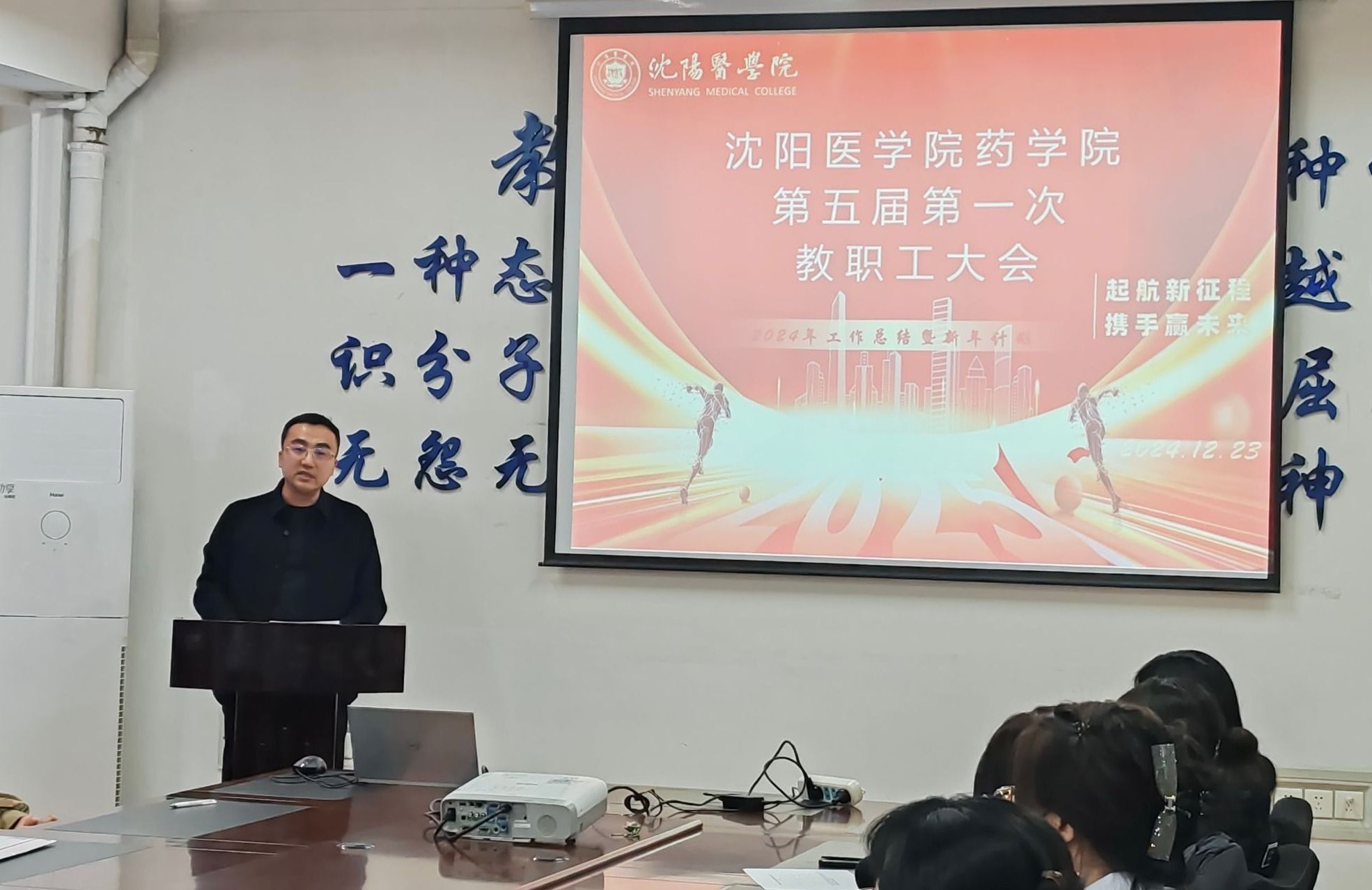 为了表彰优秀员工,分享先进事迹,激励全院员工积极进取,英国上市公司365于2024年12月9日在图书馆六楼报告厅隆重开展了“榜样引领,砥砺奋进”2023-2024年度表彰暨“我身边的榜样”事迹分享大会。英国上市公司365经理王冠男,药公司党总支书记刘旭,英国上市公司365副经理孙驰宇、副经理张大军,教研室主任任群翔、王俊平、卢方晋、隋丽丽,实验中心主任孙燕,办公室主任赵丹,组织员王展超,药公司党支部书记陈晴,员工科长程欣慧出席会议,2024级全体英国上市公司365员工及各年级优秀员工代表参会。...