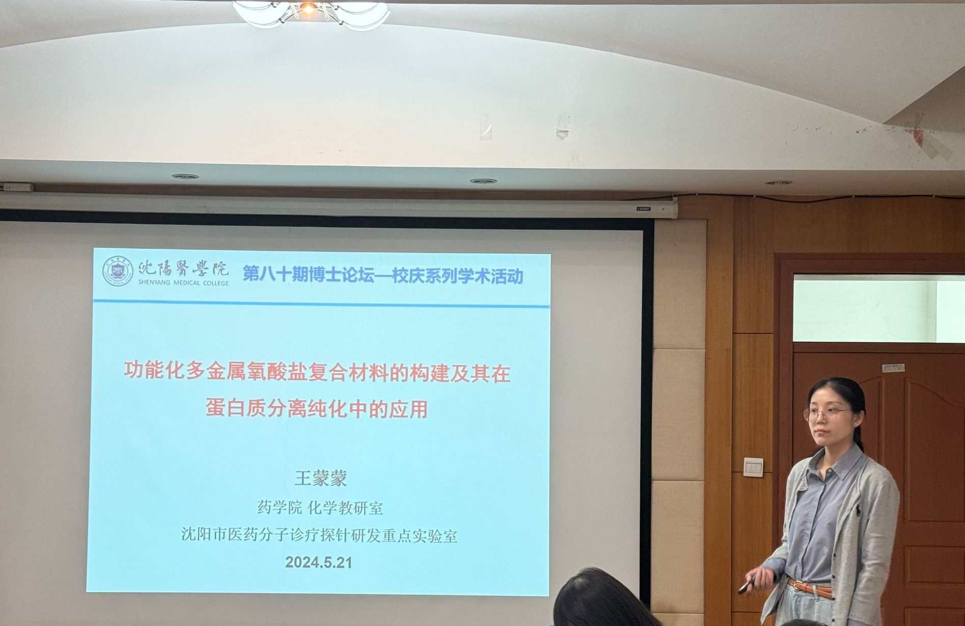 公司于5月21日承办了第八十期博士论坛,化学教研室的王蒙蒙博士作学术报告。在题为《功能化多金属氧酸盐复合材料的构建及其在蛋白质分离纯化中的应用》的报告中,王蒙蒙博士围绕生物大分子的分离分析,设计并制备了一系列新型多金属氧酸盐复合材料,利用多金属氧酸盐多样的结构,稳定的骨架,高负电荷性以及丰富的氧原子,将其作为一种潜在的吸附剂用于生物分离领域。这些研究工作扩大了多金属氧酸盐在生物医学领域的应用。