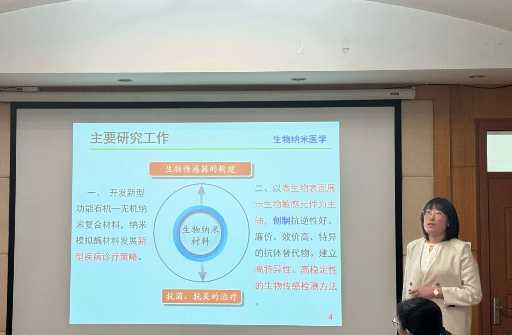公司于5月21日承办了第八十期博士论坛,化学教研室的副教授张杨作学术报告。在题为《功能性生物纳米复合材料用于生物传感及疾病诊疗》的报告中,张杨系统地介绍了新型纳米酶的设计制备、功能性纳米酶作为新型纳米探针在生物传感和医用诊疗一体化方面的研究情况,并对未来纳米酶领域的发展所面临的挑战和机遇进行了展望。