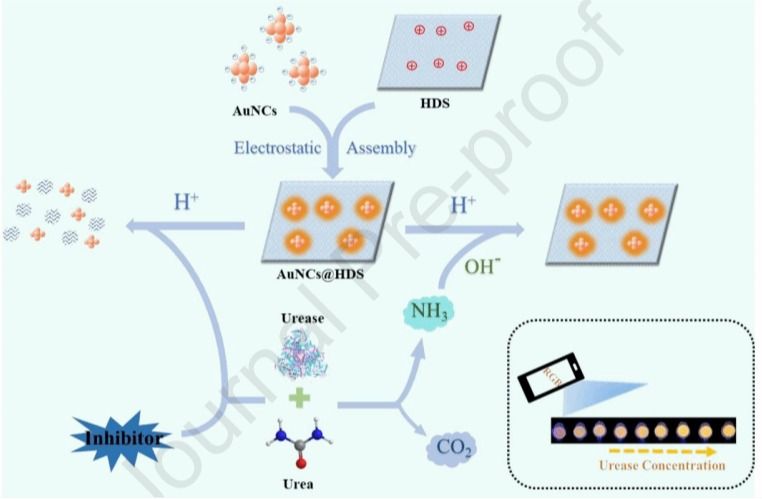 公司王冠男教授在分析化学领域中科院一区杂志STalanta(IF 6.1)期刊发表了关于基于羟基双盐基智能生物传感器用于现场检测尿素酶及其抑制剂的研究。本研究制备了一种简单灵敏的荧光传感平台,用于检测尿素酶及其抑制剂。该荧光传感平台利用了由羟基双盐(HDS)诱导的金纳米簇(AuNCs)独特的荧光增强效应和尿素酶催化水解尿素的特异性。将H+诱导的AuNCs@HDS的荧光淬灭与尿素酶催化水解尿素产生的OH- 相结合从而实现 AuNCs@HDS 的荧光响应变化,...