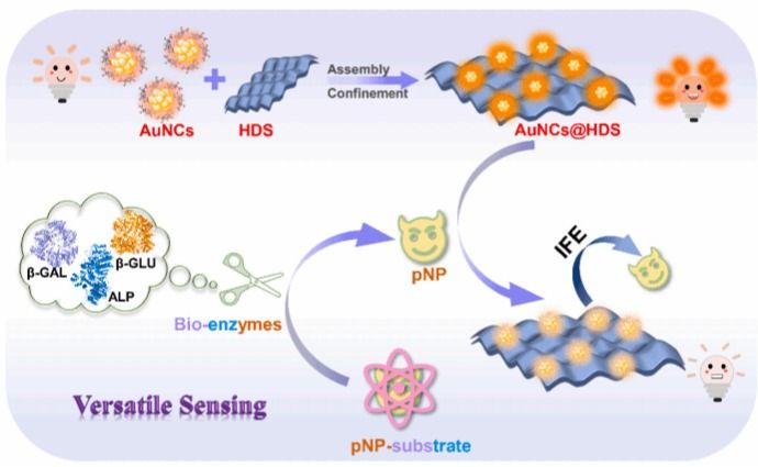 公司王冠男教授在传感器领域中科院一区杂志Sensors and Actuators: B. Chemical(IF 8.4)期刊发表了关于将金纳米团簇限制羟基双盐用于生物酶的多功能荧光传感的研究。在本研究中,通过静电限域策略制备了具有高量子产率(QY)和稳定性的固定化金纳米团簇 @层状双氢氧化物(AuNCs@HDS),并且首次对其进行了合理设计,用于对多种重要生物酶进行高效且通用的传感检测。这项工作具有以下特点。(1)AuNCs@HDS 是通过带负电荷的金纳米团簇(...