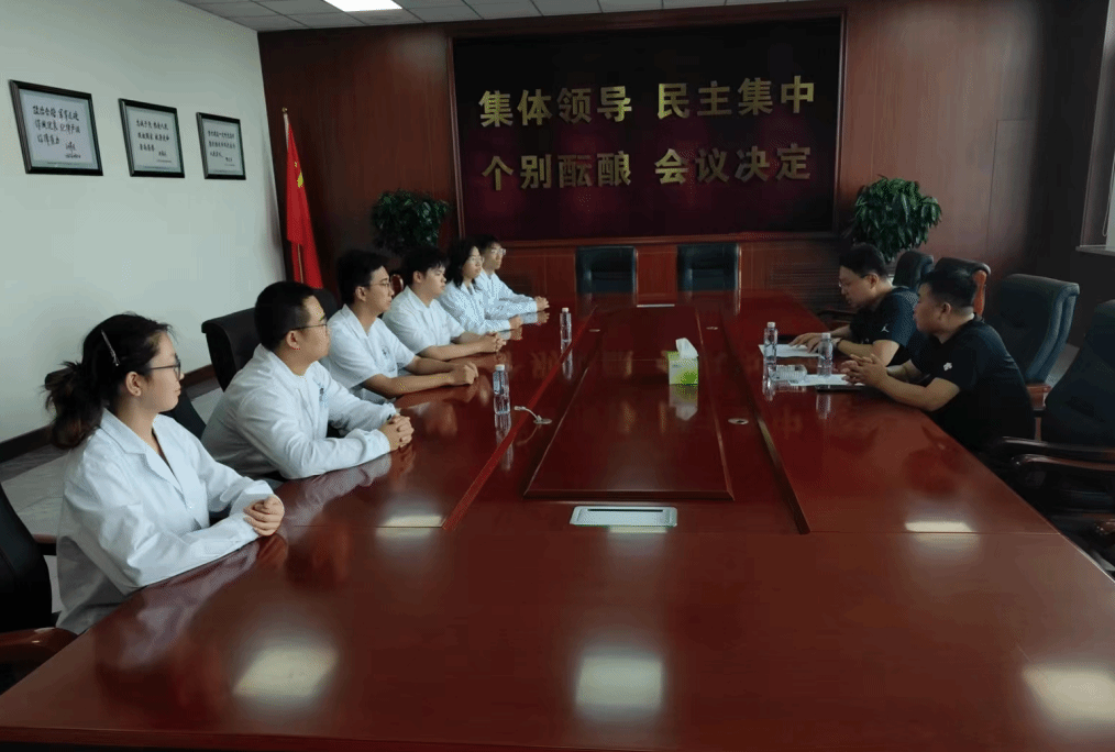 在走访过程中,学院领导与实习基地负责人、带教老师及实习生代表进行了座谈交流。实习基地详细介绍了实习生的安全教育、日常管理、带教计划及考核机制,并对公司实习生的专业素养和实践能力给予高度评价:“同学们理论基础扎实,操作规范严谨,能快速适应工作节奏,展现了药院学子的良好风貌。”