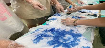 最终,同学们制作出了独一无二的的扎染作品。色彩的交织碰撞蕴藏着同学们对非遗文化的热爱,也展现了扎染这一传统工艺的神奇魅力。