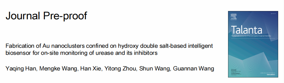 公司王冠男教授在分析化学领域中科院一区杂志STalanta(IF 6.1)期刊发表了关于基于羟基双盐基智能生物传感器用于现场检测尿素酶及其抑制剂的研究。